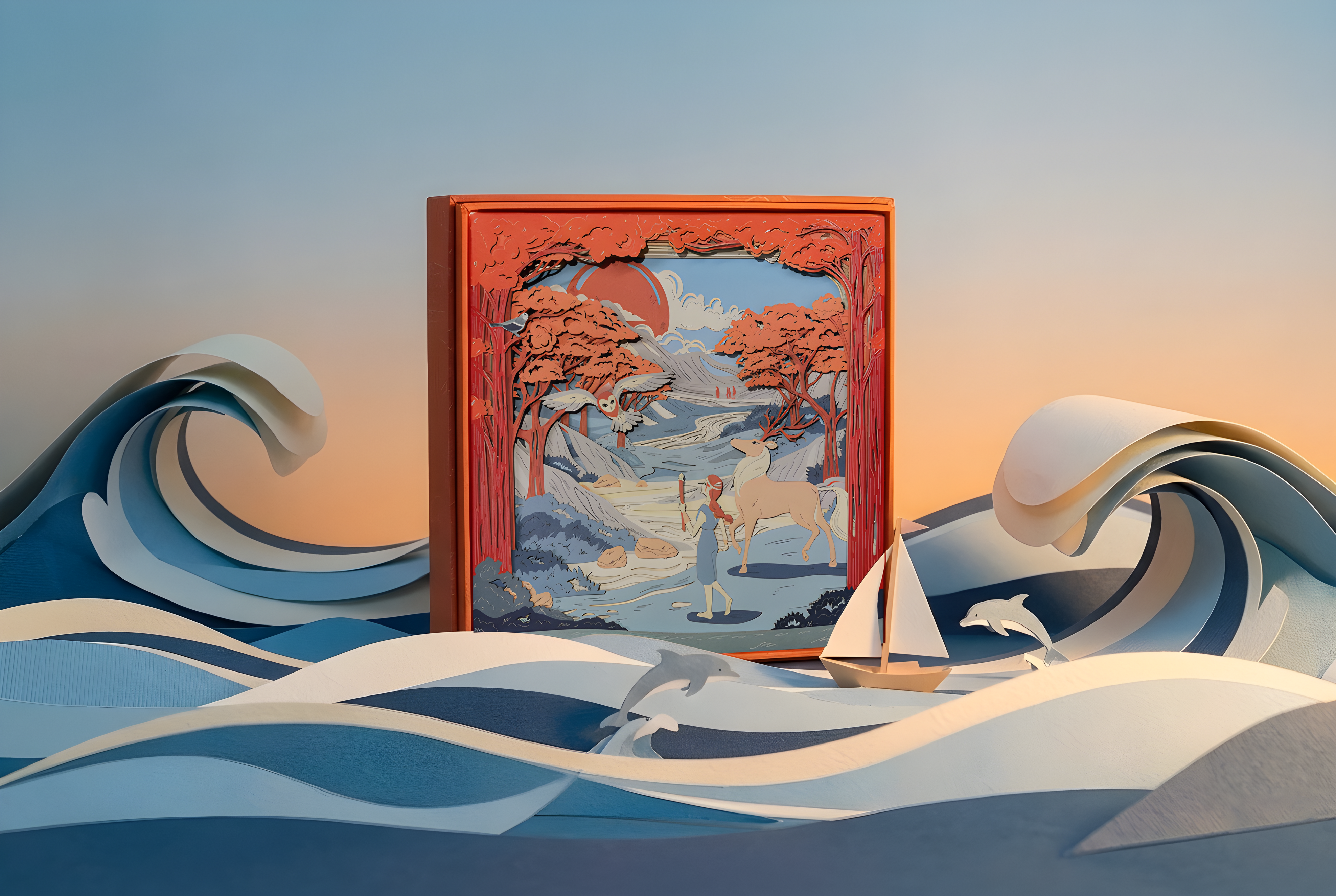 At FOLDORI, craft meets narrative. Beyond the landscape, our story-based diorama focuses on 'The Encounter' between its three characters. It’s a form of visual storytelling where the creative power of paper does all the talking.