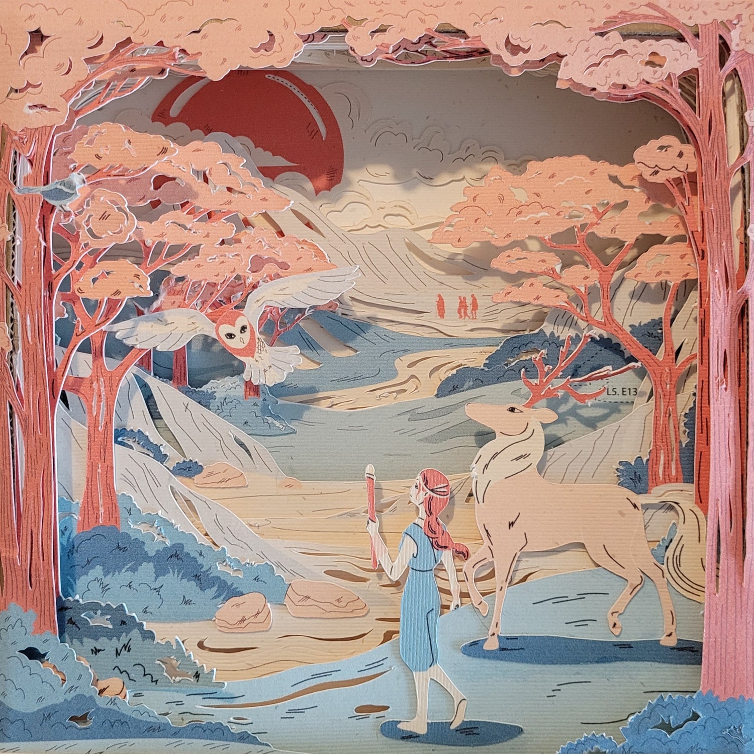 The scenery is made of 10 laser-cut layers stacked up and inserted in a decorative box.