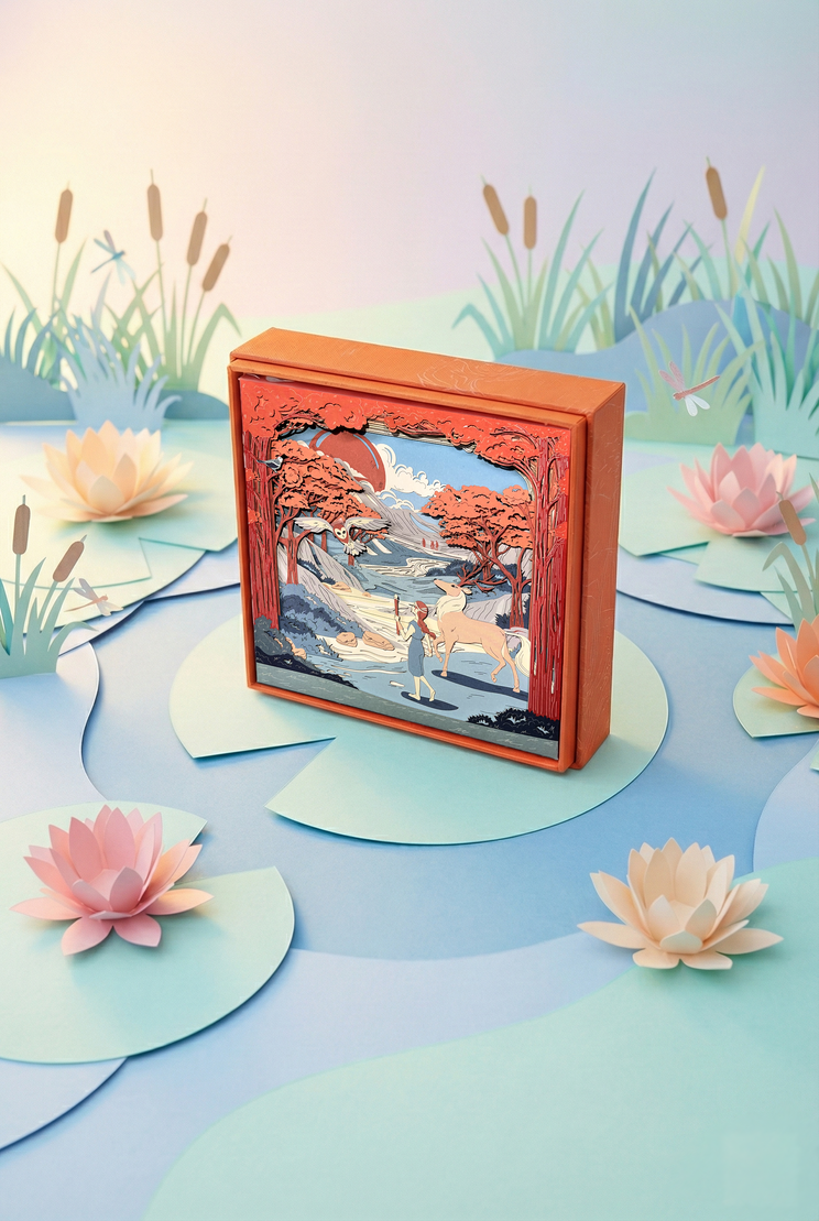 Art Principal Mary utilizes a technique called "Landscape Mapping" to translate complex narratives into three-dimensional art. In the Sunrise Dreams set, this is achieved by layering high-contrast offset-printed sheets into three distinct zones: a forest foreground, a river middle-ground, and mountain background. This depth is further refined through nine iterations of color palettes to ensure that the story of the three heroes meeting in the Silvia Forest is visually immersive and professional.